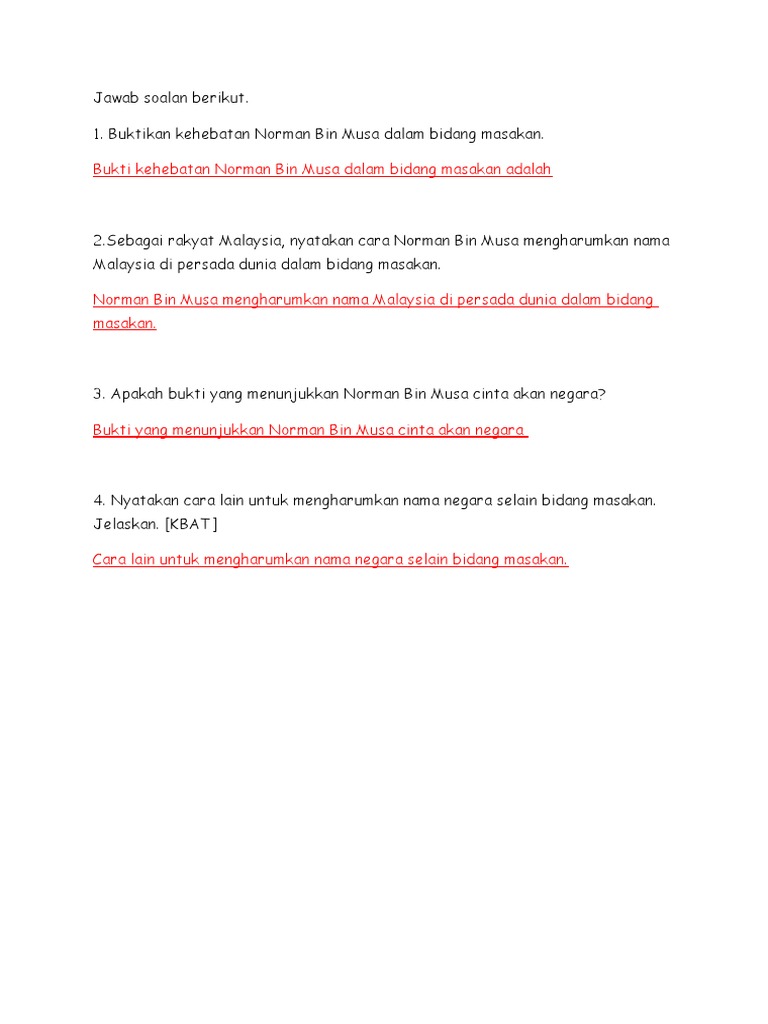 Contoh individu yang mengharumkan nama negara. Dengan demikian kamu akan menjadi orang yang dapat membawa nama baik bangsa. Bersertakan contoh dan huraian.