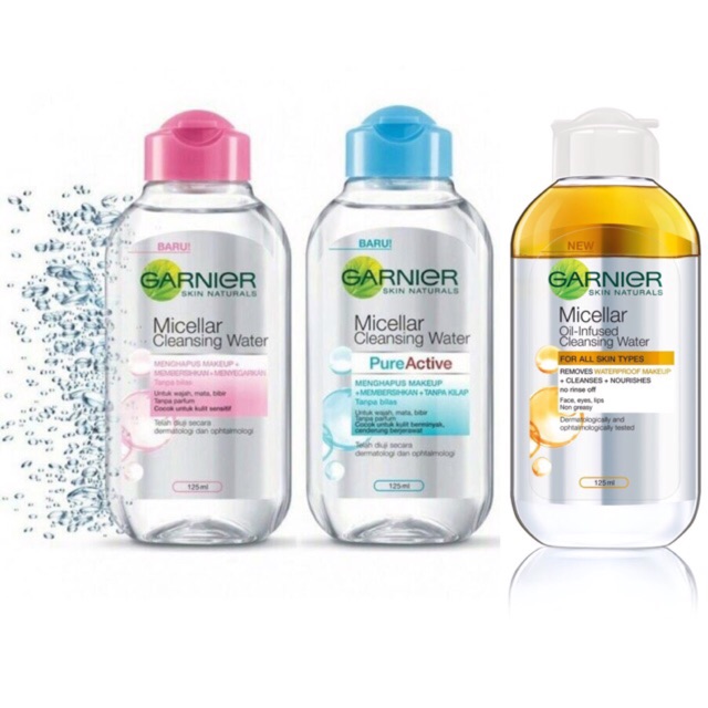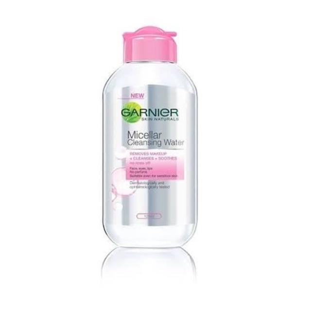 Garnier Micellar Cleansing Water All-in-1 Makeup Remover Cleanser adalah pembersih makeup sekaligus sabun pembersih wajah berteksur air yang lembut di wajah. GARNIER Micellar Cleansing Water PINK 125mlRp18700. Micellar water first came into existence as a substitute to water in skin care.